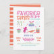 Retro Divertido e Favorito Moderno Oferece Festa de Natal para Troca de Presentes com fontes e itens de férias, doces, gengibre, caneca de cacau quente, sobremesa e outros presentes sazonais. Excelente para a festa de Natal! Cores brilhantes de pinks, laranja, azul e verde.
