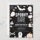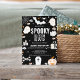 Convite de festa de aniversário de menina com tema de Halloween com ilustrações de fantasma, gato preto, aranha, morcego, doces, velas, aranha e abóboras. "Convite de Aniversário Fantasma de Halloween Spooky On Spooktacular! Personalize facilmente este design com seus detalhes!" . Se você precisar de ITENS CORRESPONDENTES, consulte nossa coleção correspondente ou loja.