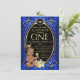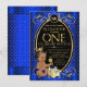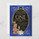 Convites de festa de um ano do príncipe afro-americano com um lindo príncipe bebê étnico vestindo uma fralda azul real e coroa dourada em um belo fundo azul real e dourado. Esses convites de festa de um ano do príncipe real são facilmente personalizados para o seu evento, basta adicionar seus detalhes.