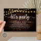 Marque o começo de sua eternidade com elegância rústica usando nossa casa e cordas da vila luzes escuras de madeira marrom do fundo tematizado, carta de convite para celebração de elopementos de casamento, "festa de vamos". Perfeito para os casais estendendo sua alegre ocasião, este convite exude sofisticação com uma sugestão de brincadeira, definindo o palco para um evento memorável. Adorado com um tema design de roteiro moderno de eterno, ele adiciona um toque de encanto refinado às suas festividades. Feito por TeeshaDerrick, este convite promete capturar maravilhosamente sua história de amor.
