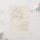 Marque o começo de sua eternidade com elegância usando nosso moderno tema romântico de cinzas de natas românticas, feliz para sempre, depois do convite de celebração de elopementos de casamento, "Partido do Vamos". Perfeito para os casais estendendo sua alegre ocasião, este convite exude sofisticação com uma sugestão de brincadeira, definindo o palco para um evento memorável. Adorado com um tema design de roteiro moderno de eterno, ele adiciona um toque de encanto refinado às suas festividades. Feito por TeeshaDerrick, este convite promete capturar maravilhosamente sua história de amor.