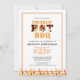 Convidar convidados para uma festa de aniversário de CHURRASCO HOT SMOKIN para qualquer aniversário de idade ou qualquer ocasião ou motivo pelo qual o texto pode ser alterado para o seu evento personalizado. Excelente para a grelha do quintal e entusiasta do fumador. Design apresenta chamas e elementos de tipografia de fogo em laranja, amarelo, vermelho e marrom. Entre em contato com o designer por meio do Zazzle Chat ou makeitaboutyoustore@gmail.com se você quiser que este design seja modificado, em outro produto ou quiser que você coordene itens.