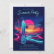 Convites Festa de Verão - Luzes de Neon do Surfboard Sunset