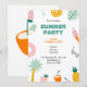 Ilumine sua loja com este convite de verão limpo e colorido. Com ilustrações divertidas de frutas, palmeiras, óculos de sol e guloseimas, ele captura a vibe divertida e relaxante das festas de verão.