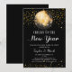 Dourada de Véspera de ano novo da Bola de Disco Convite de festas Preta