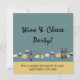 Este Convite de festas de Vinho e Queijo tem um fundo colorido com imagens de garrafas de vinho, queijo, óculos meio cheios...tudo pronto para preparar o clima para a sua festa! Há também uma boa citação sobre o vinho na frente. Sinta-se à vontade para personalizar a parte de trás do convite com todos os detalhes da sua noite especial. Você pode alterar o estilo da fonte para outra coisa, se quiser, e a cor no verso pode ser alterada com a guia de cores, se desejar.