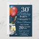 Um convite de festas de celebração de na moda com garrafa de vinho espumante, balde de gelo, dois copos de flauta de champanhe e balões todos em fundo azul com texto de prata e azul. Um convite para o excelente para aquele aniversário especial.Todo o texto pode ser alterado conforme necessário para atender às necessidades do seu partido