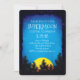 Árvores silenciadas por uma ascensão Superlua, com estrelas e um céu azul de meia-noite. Personalize o texto e o tipo de participante para a sua própria parte de visualização celeste.