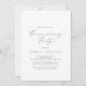 Este delicado convite de festas de caligrafia prateada é perfeito para um evento moderno. A design romântica minimalista apresenta uma magnífica e elegante tipografia de cinza prateada num fundo branco com um aspecto simples e limpo.