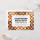 Celebre o grande jogo com este convite de tendências, futebol e tabuleiro de xadrez e reúna amigos para uma festa de relógio. Caixas de texto fáceis de editar e um código QR verificável na parte traseira envia convidados para o seu RSVP on-line ou site de organização do potluck. Este convite é a escolha perfeita para uma festa que comemora ambas as equipes com padrões contrastantes em dois conjuntos de cores. Atualmente configurado para uma laranja queimada versus dinâmica de equipe roxa e dourada OU você pode mudar as cores para atender às suas necessidades usando o botão editar e selecionar cada azulejo de padrão individualmente, a forma colorida abaixo dela e o plano de fundo para personalizar as cores das equipes que você estará assistindo.