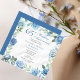 Elegante azul e branco com o Dsky Sage Green Greenery Floral Frente design de aniversário de casamento.