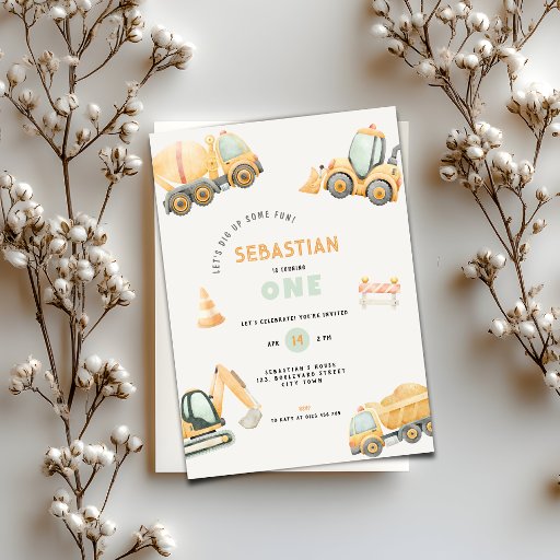 Convites Festa do Caminhão de Obras Menino de um Ano de Ida