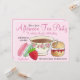 Convites apresentam uma ilustração original de marcador de uma xícara de chá, macarons e um scones. Ideal para um chá de noiva, festa de aniversário ou chá da tarde. Basta personalizar com suas informações.