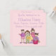 Torne o seu próximo aniversário especial e fácil de planejar com estes convites personalizados de festa de pijama. Apresentando um fundo cor-de-rosa pálido e um gráfico de personagens fofinhos de um grupo de meninas que se vestiam de pijama prontos para uma festa de pijama. Os convites são de dois lados, todos os aspectos da redação podem ser personalizados com os seus próprios detalhes. Insira todas as suas próprias informações no modelo e no seu pronto pedido, é simples assim. Use o recurso "Personalizar" para alterar o estilo e/ou a cor da fonte.