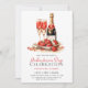 Calma Moderna Minimalista Aquarela Floral Rosa de Botânica Champanhe Vinho Morangos Morangos Cocktails Dia de Galentine Brancas de café damas celebrando senhoras solteiros escadarias de solteiros celebrando entre namorados convites de festas Mensagem Vermelha para mais personalização