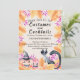 Este convite festivo apresenta uma abóbora e um gato de Halloween. As palavras "fantasias e coquetéis" são escritas em letra divertida. É a maneira perfeita de convidar seus amigos para uma festa de Halloween mestiça, onde eles podem vir em fantasia e desfrutar de um delicioso cocktail de Halloween.