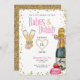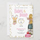 Bebês e Convite de festas do dia de Bubble Galentine com garrafa de champanhe, flautas de champanhe, flecha de ouro e macarrão rosa.