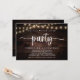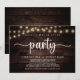Marque o início do seu para sempre com elegância usando nosso cartão de convite de casamento tema madeira escura com luzes de corda rústicas contemporâneas para celebração de casamento "Festa Felizes para Sempre". Perfeito para casais que desejam estender sua alegre ocasião, este convite exala sofisticação com um toque de alegria, preparando o cenário para um evento memorável. Adornado com um tema de design de letra moderna atemporal, ele adiciona um toque de charme refinado às suas festividades. Criado por TeeshaDerrick, este convite promete capturar lindamente a história do seu amor.