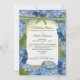 Bonito drangeas azuis sobre burlap criam o trabalho de estrutura para este convite de festas de jardim elegante. Personalizar texto para qualquer ocasião.
