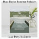 Convidem convidados para diversão a se reunirem na água celebrando o dia mais longo do ano e o início da temporada de verão com o Convite de festas Boat Docks Summer Solstice Lake Watercolor. Perfeito para um cheio de natação, barco e biscoitos, a quente e sazonal, numa casa de lago, numa casa de campo ou num resort. Esta festa ao lado do lago apresenta uma fotografia digital com aquarela pintada de cenas cênicas de dois píer de madeira com água calma do lago e uma linha verde de árvore à distância. Disponível como convite impresso para envio e/ou como download digital para fácil compartilhamento digital online.
