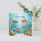 Crie um impacto com este convite de festa do Texas Aquarium Cowboy Fish, apresentando peixes coloridos em aquarela usando chapéus de cowboy divertidos em uma cena submarina limpa. Este design único combina diversão no oceano com um toque do oeste texano, criando um convite memorável e atraente para a sua celebração.