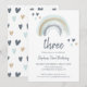 Blue Boho Rainbow e Heart Design . Os modelos estão preparados para personalizar e personalizar com os detalhes da sua festa. Se você quiser alterar a cor ou o estilo da fonte, clique no botão Personalizar mais no final do modelo. Nós vendemos papelaria e suprimentos de festas em loja.