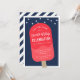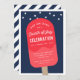 Convide amigos, família e vizinhos para a sua celebração do Dia 4 de julho com estes convites festivos numa paleta clássica de cor vermelha, branca e azul. Design moderno apresenta a ilustração do pop sorvete vermelho num fundo azul marinho pontilhado com estrelas patrióticas. Personalize com o seu tipo de evento, fazer este versátil convite de verão perfeito para o seu churrasco, CHURRASCO, cookout, festa de bloco ou comemoração do Dia de Independência em 4 de julho.