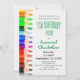 Este design convite de festas divertido apresenta uma coluna de lápis de cor d'água do arco-íris. Todos os detalhes da parte estão na frente com cor verde de fonte para a parte e informações de nome. Preencha os campos de texto modelo em personalizar, remova qualquer informação ou clique em personalizar para selecionar um estilo de fonte, tamanho e cor preferidos.