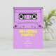 Um convite de aniversário totalmente personalizável para uma festa dos anos 80 com tema retro que apresenta uma ilustração de uma fita cassete preta contra um fundo personalizável neon roxo. O texto pode ser personalizado de acordo com as suas necessidades. Pegue seu retrô!