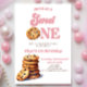 Este é um doce "Um Cookies" e um Convite de festas de primeiro aniversario de Leite!