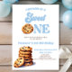 Este é um doce "Um Cookies" e um Convite de festas de primeiro aniversario de Leite!