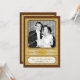Celebre aquele casal especial com este convite de festa de Aniversário de Bodas de Ouro. A foto deles está contra um fundo com padrão dourado damasco com uma moldura em burgundy escuro. (Certifique-se de substituir por uma foto grande e de alta resolução para esta imagem da frente). Os nomes deles e a data do casamento (ou qualquer outro texto) são destacados na placa abaixo. Em seguida, mostre-os como eram e como são agora no verso com todas as informações do evento abaixo. Produtos combinando disponíveis.