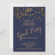 Comemore com um convite de festas de estouro de na moda em preto com confete de ouro e tipo ouro, e uma mistura de script e tipo de vintage.