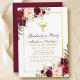 Watercolor Floral Burgundy Cartão de Convite à Festa de formatura Médica inclui rosas cor-de-rosa, rosas burguentos, flores vermelhas e verde botânico - Frame Dourado, Volta da Borgonha