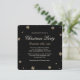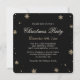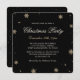 Elegante convite de festas de Natal preto com flocos de neve e estrelas pequenas.