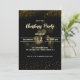 Elegante Festa Dourada de Natal Negra Convite Convite de festas de Natal Dourado e convites de festas de natal de Cuta Negra com um simples fundo branco, árvores de mola aquática, santa claus, uma coleção de presentes, e um modelo moderno de festa que é fácil de personalizar.