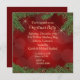 Aqui está um convite elegante para festas de férias, com as informações de sua festa em ouro no centro. O topo e o fundo têm uma borda de agulhas de pinheiros verdes e cones de pinheiros. Algumas estrelas douradas brilham ao fundo. As imagens e o texto são colocados sobre um fundo vermelho gradiente com um padrão circular sutil. A parte de trás do convite é vermelho de correspondência sólida. É fácil adaptar este convite a uma empresa ou empresa. Bonito! Se você quiser adicionar texto à parte traseira, escolha Personalizar. *Obrigados para Sucatas e Tubos para clip-art usados neste design.