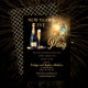 Bola de disco e garrafa de champanhe moderna com design de "Festa de Véspera de Ano Novo" preto de vidro e ouro.
