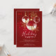 Festa de Natal moderna com um fundo vermelho com trio de enfeites de bola de Natal e flocos de neve de ouro