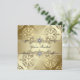 Modelo de convite de festa em damasco dourado. Peças coordenadas disponíveis mediante solicitação por e-mail.
