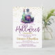 Um lindo convite de festas de coquetel roxo e ouro de halloween. Esta design verde e roxa divertida apresenta garrafas de poção mágica assustadoras. Fácil de personalizar com a sua própria festa de cocktail de halloween, ou detalhes da festa de janto temático de halloween.