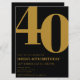 Convites Festa Elegante de aniversário de 40 anos Preto e D