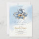Design de charmoso para Convites de chá de panela do Tea Party apresenta rosas azuis e dourados buquês e pote de chá floral de aquarela. Letra moderna de escrita de caligrafia. Não hesite em contactar-me para obter itens ou personalizações correspondentes. Rosas de lâmina ©