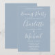 Elegante convite de festas azul de assinatura empoeirado da noite de casamento com nomes de estilo de assinatura, este convite de casamento na moda pode ser personalizado com suas informações em letra chic. Projetado por Thisnotme©