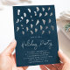 Convide convidados para a sua festa com nossos convites para festas de na moda Winter Snow. Os convites festivos de festas de festas de festas apresentam um fundo de aquarela marinho, falso pincelada de folha prateada, espaços reservados para texto personalizado e um padrão riscado na parte de trás da design.