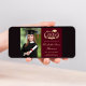 Anúncio clássico de formandos vermelho burgundy e convite de festas apresentando "Classe de" dentro de uma coroa de louros, um boné de formando e um diploma, uma foto do formando e seu nome em um elegante roteiro de ouro leve. Adicione sua escola, major, honras, planos futuros, etc., em tipografia de ouro leve. No verso, adicione os detalhes da parte.