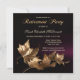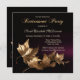 Um convite de na moda para uma festa de aposentadoria (ou aniversário ou outra festa, se preferir!) com folhas de ouro sobre fundo preto de uva burgundy escura. O texto "Parte de Reforma" é uma imagem estilizada e pode ser excluído se você preferir texto personalizado.