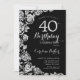 Convite de festas floral de prata preta. Design elegante com rosas, folha de falso prata e letra de script de tipografia. A Trendy convida o cartão perfeito para uma festa de na moda. Pode ser personalizado para qualquer idade. Impressos convites Zazzle ou modelo de impressão digital instantânea para download.