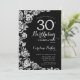 Convite de festas floral de prata preta. Design elegante com rosas, folha de falso prata e letra de script de tipografia. A Trendy convida o cartão perfeito para uma festa de na moda. Pode ser personalizado para qualquer idade. Impressos convites Zazzle ou modelo de impressão digital instantânea para download.