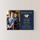 Elegante convite de festas azul escuro com boné de formando dourado, a foto do formando, seu nome na tipografia clássica da serifpografia de ouro e sua escola, major, honors ou planos futuros. Personalize os detalhes do seu partido no verso.
